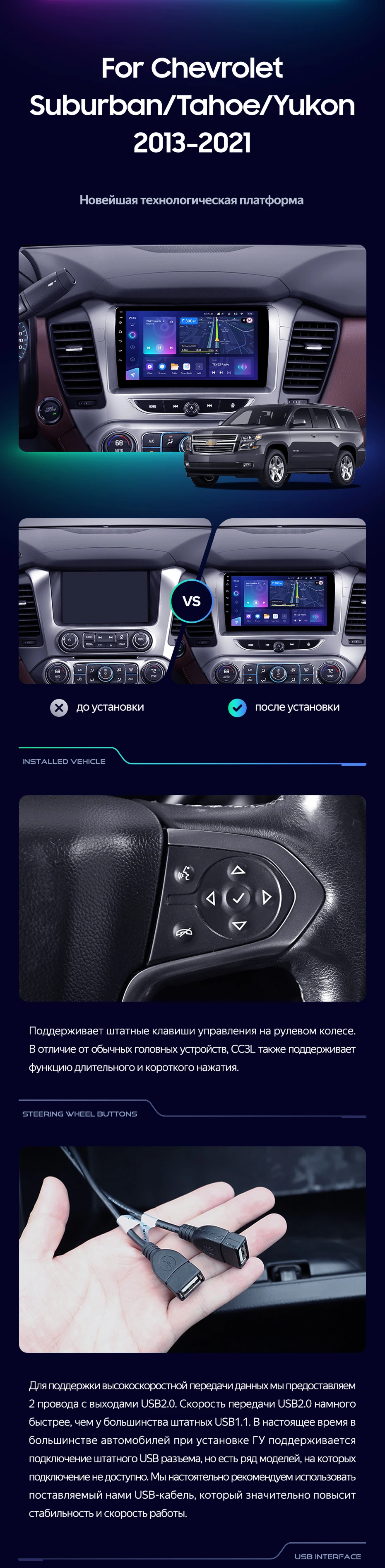 Штатная магнитола Teyes CC3L 4/32 Chevrolet Tahoe K2UC (2013-2021) - купить всего за 36 600 руб. в интернет-магазине в Томске Teyes.com.ru. ✓ Самый лучший выбор мультимедиа ✓ Лучшая замена штатному ГУ ✓ Тел. +7 (800) 775-31-74