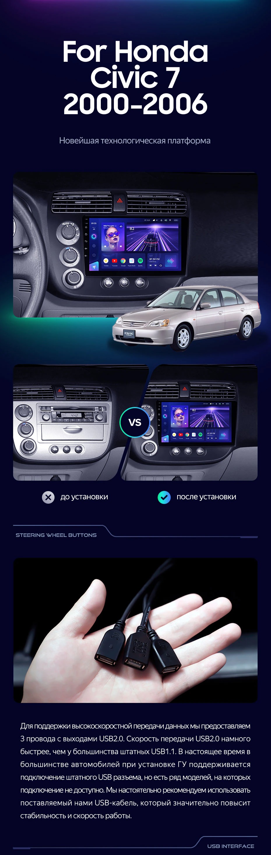 Штатная магнитола Teyes CC3L 4/32 Honda Civic 7 (2000-2006) F1 - купить всего за 23 500 руб. в интернет-магазине в Томске Teyes.com.ru. ✓ Самый лучший выбор мультимедиа ✓ Лучшая замена штатному ГУ ✓ Тел. +7 (800) 775-31-74