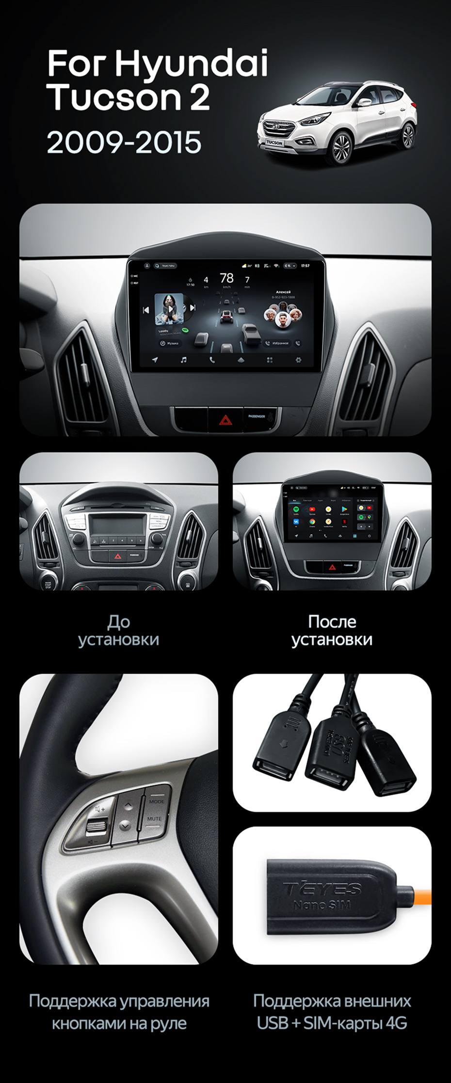 Штатная магнитола Teyes CC4 6/64 Hyundai ix35 (2009-2015) (Tucson 2) Тип-C - купить всего за 48 870 руб. в интернет-магазине в Томске Teyes.com.ru. ✓ Самый лучший выбор мультимедиа ✓ Лучшая замена штатному ГУ ✓ Тел. +7 (800) 775-31-74