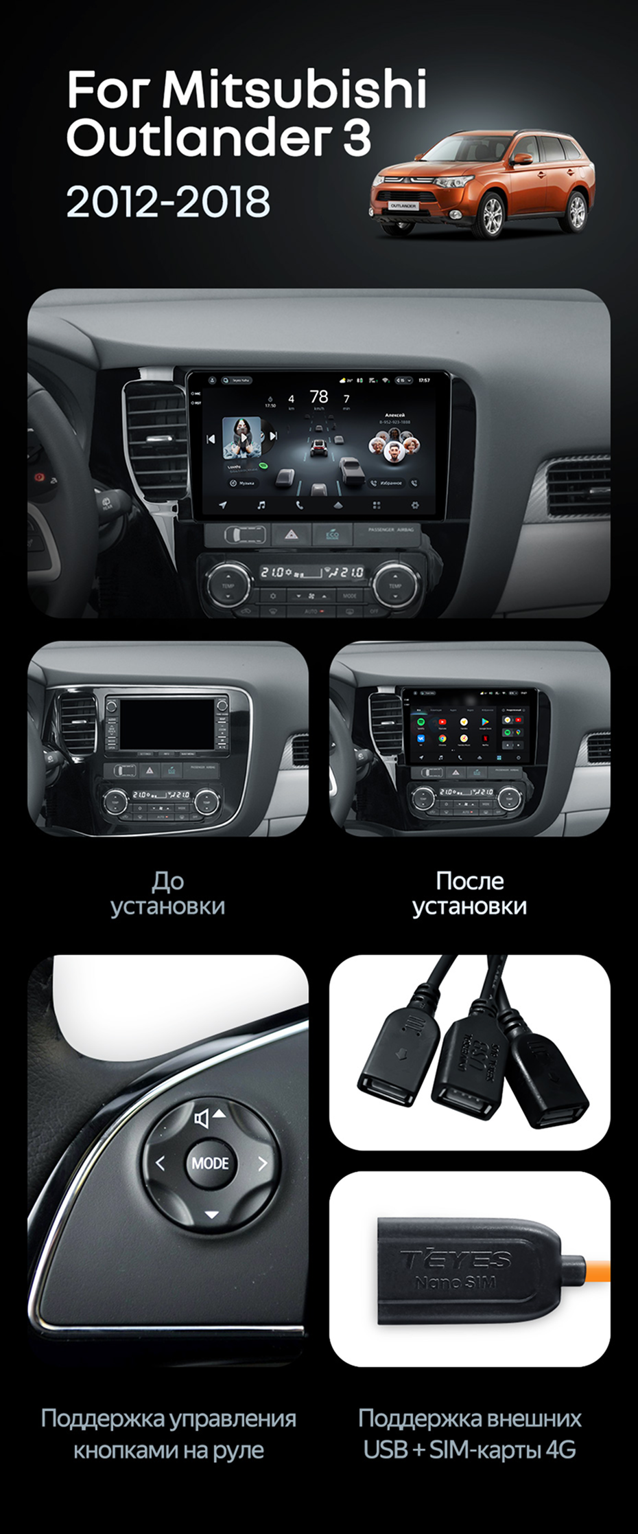 Штатная магнитола Teyes CC4 6/64 Mitsubishi Outlander 3 GF0W GG0W (2012-2018) Тип-B - купить всего за 47 940 руб. в интернет-магазине в Томске Teyes.com.ru. ✓ Самый лучший выбор мультимедиа ✓ Лучшая замена штатному ГУ ✓ Тел. +7 (800) 775-31-74