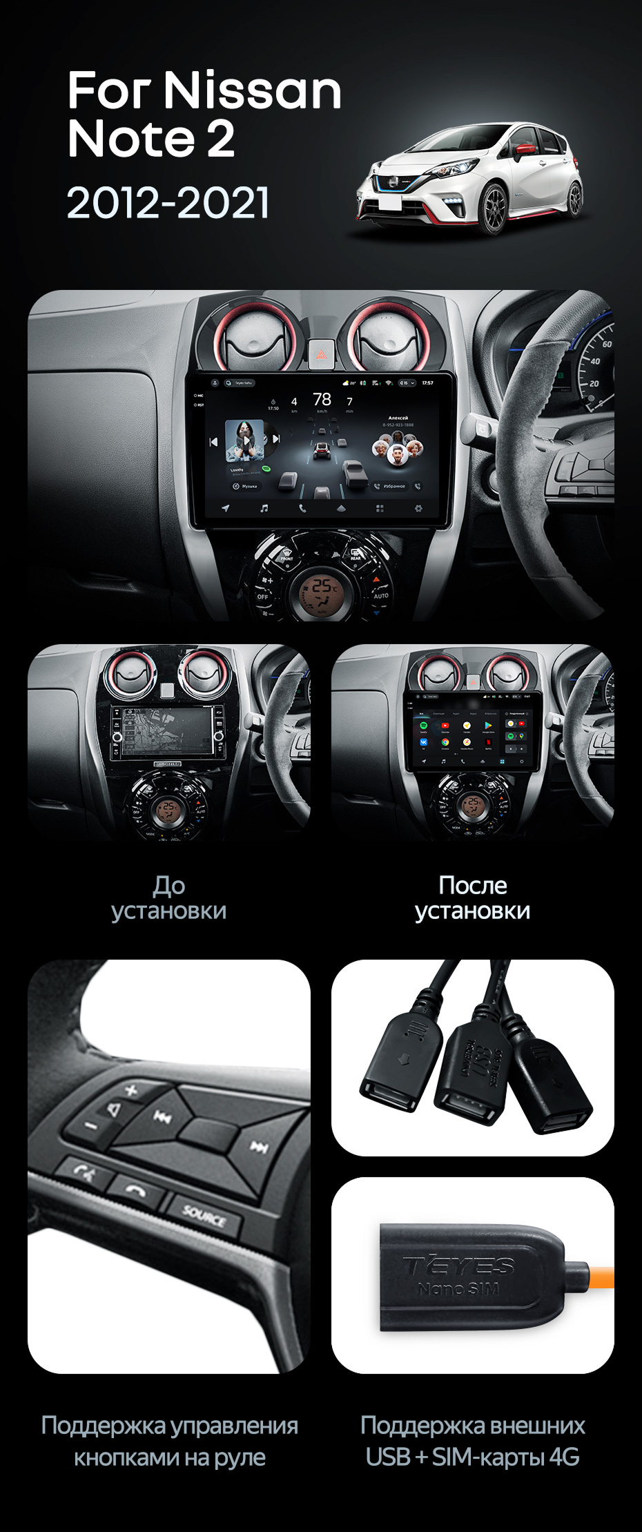 Штатная магнитола Teyes CC4 6/64 Nissan Note 2 E12 (2012-2021) - купить всего за 47 600 руб. в интернет-магазине в Томске Teyes.com.ru. ✓ Самый лучший выбор мультимедиа ✓ Лучшая замена штатному ГУ ✓ Тел. +7 (800) 775-31-74
