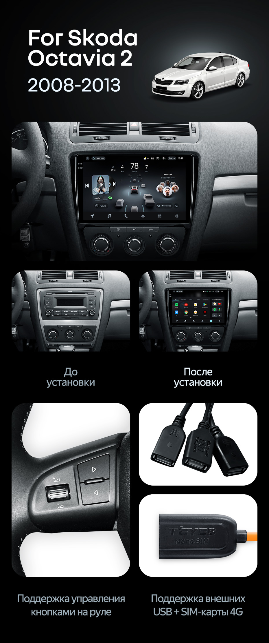 Штатная магнитола Teyes CC4 8/128 Skoda Octavia 2 A5 (2008-2013) - купить всего за 53 200 руб. в интернет-магазине в Томске Teyes.com.ru. ✓ Самый лучший выбор мультимедиа ✓ Лучшая замена штатному ГУ ✓ Тел. +7 (800) 775-31-74