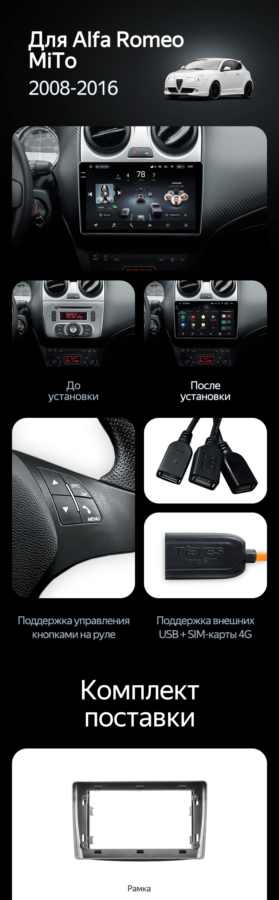 Штатная магнитола Teyes CC4 Pro 12/256 Alfa Romeo MiTo 955 (2008-2016) - купить всего за 69 160 руб. в интернет-магазине в Томске Teyes.com.ru. ✓ Самый лучший выбор мультимедиа ✓ Лучшая замена штатному ГУ ✓ Тел. +7 (800) 775-31-74