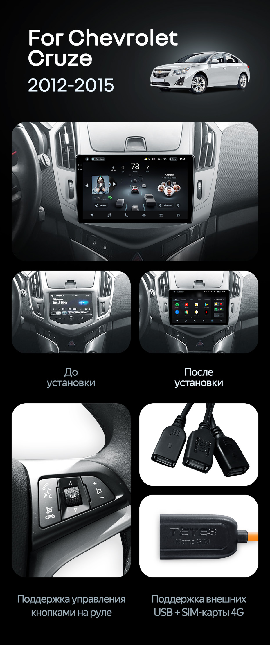 Штатная магнитола Teyes CC4 Pro 12/256 Chevrolet Cruze J300 J308 (2012-2015) F1 - купить всего за 68 650 руб. в интернет-магазине в Томске Teyes.com.ru. ✓ Самый лучший выбор мультимедиа ✓ Лучшая замена штатному ГУ ✓ Тел. +7 (800) 775-31-74