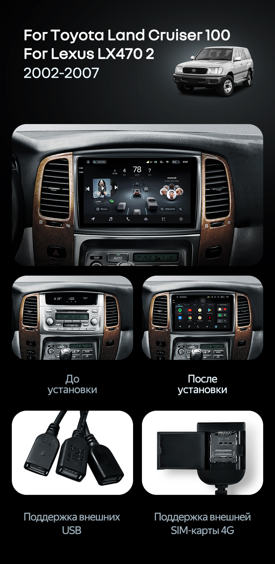 Штатная магнитола Teyes CC4 Pro 12/256 Lexus LX470 J100 2 (2002-2007) Тип-C - купить всего за 68 650 руб. в интернет-магазине в Томске Teyes.com.ru. ✓ Самый лучший выбор мультимедиа ✓ Лучшая замена штатному ГУ ✓ Тел. +7 (800) 775-31-74