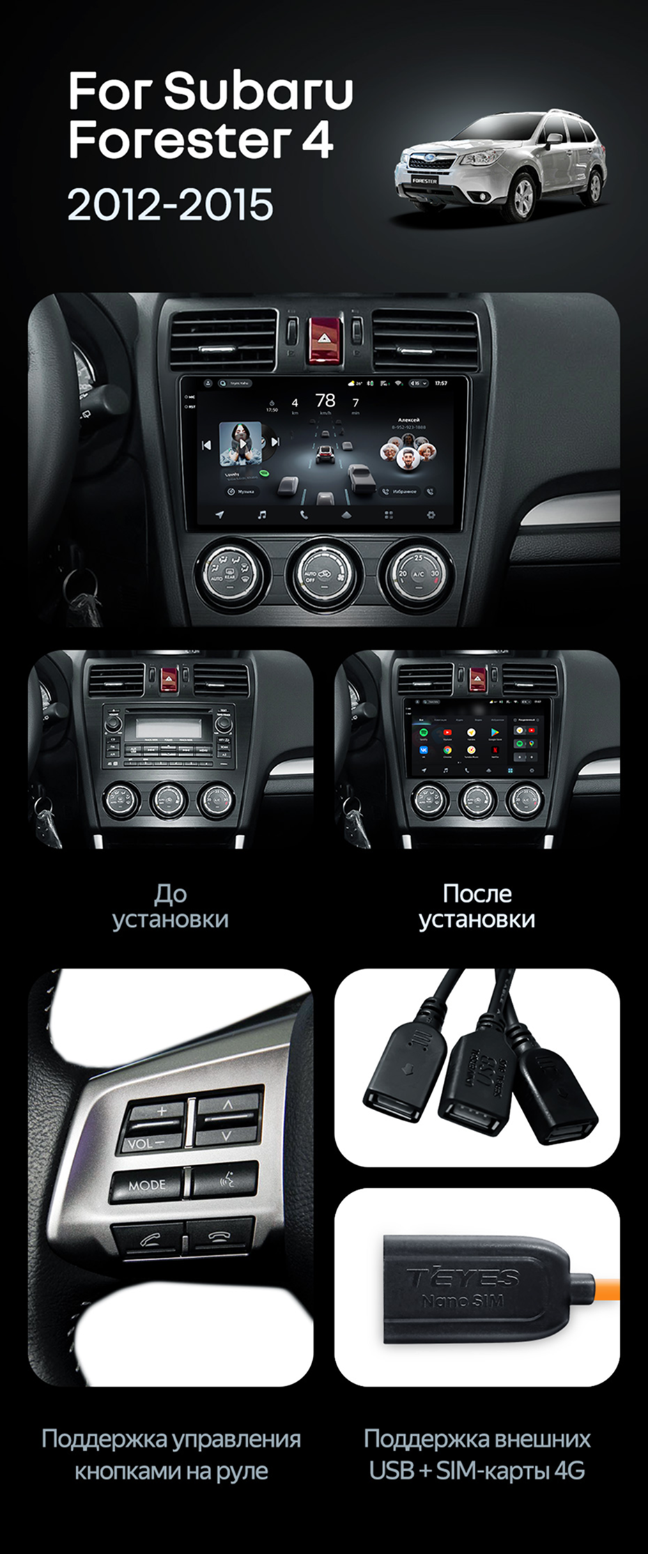 Штатная магнитола Teyes CC4 Pro 12/256 Subaru Forester 4 SJ (2012-2015) Тип-A - купить всего за 65 950 руб. в интернет-магазине в Томске Teyes.com.ru. ✓ Самый лучший выбор мультимедиа ✓ Лучшая замена штатному ГУ ✓ Тел. +7 (800) 775-31-74