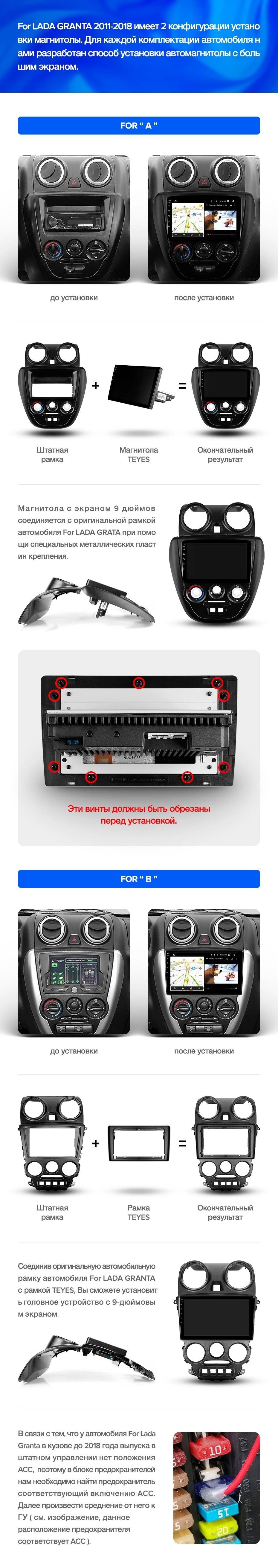 Полный комплект установки магнитолы Teyes с рамкой и проводкой можно выбрать в каталоге штатных магнитол LADA Granta Sport (2011-2018).