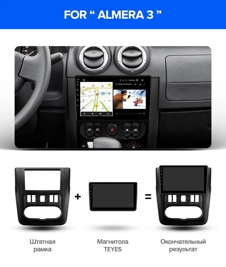 Полный комплект установки магнитолы Teyes с рамкой и проводкой можно выбрать в каталоге штатных магнитол Nissan Almera 3 G15 (2012-2018).